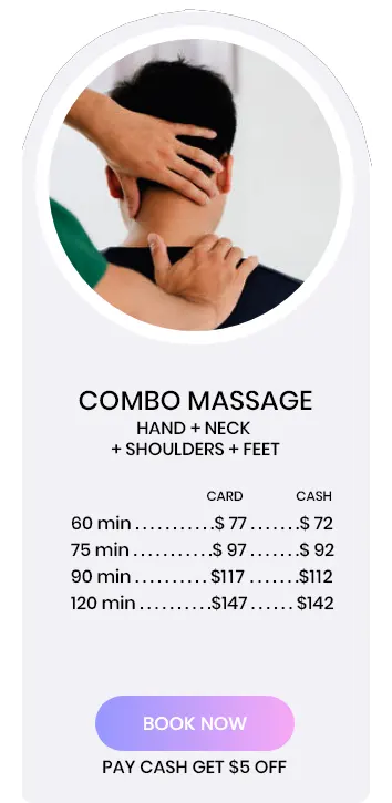 A Hand, Neck and Shoulder massage aims to relieve tension, reduce pain, and improve mobility in these areas through a combination of massage techniques.